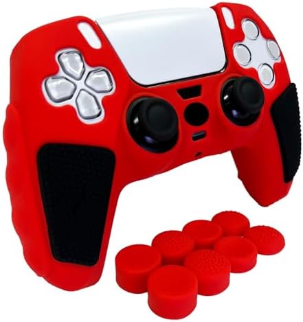 PS5 Controller Skin – Red Anti-Slip Grip + Thumb Grips